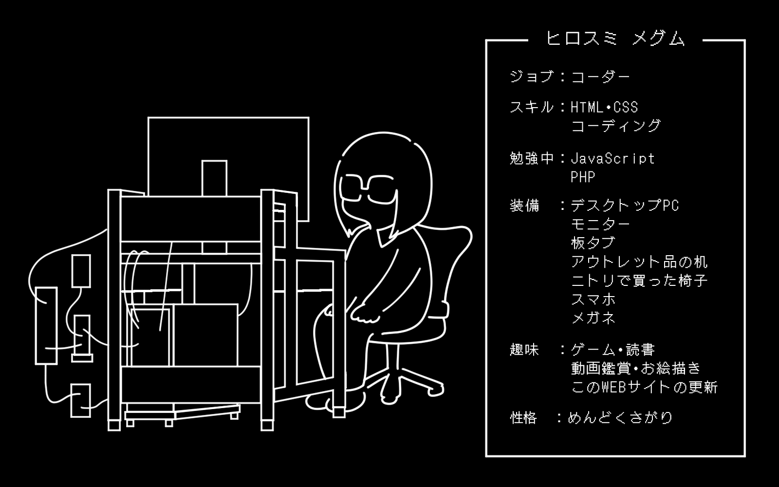 こんにちは。このWEBサイトを作りました、ヒロスミ メグムです。