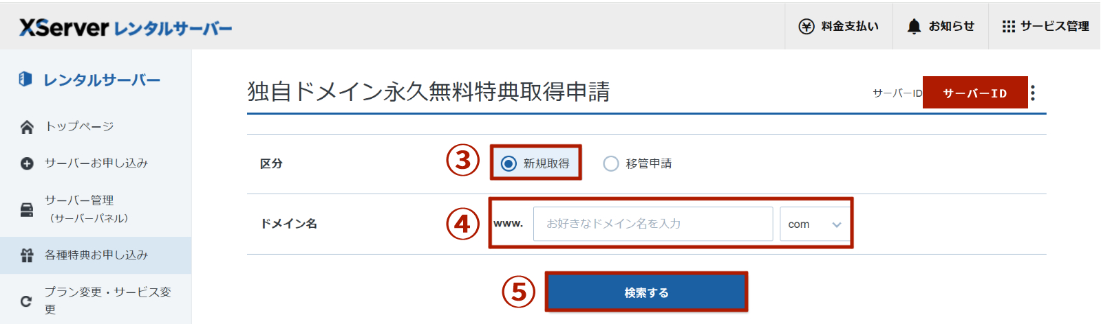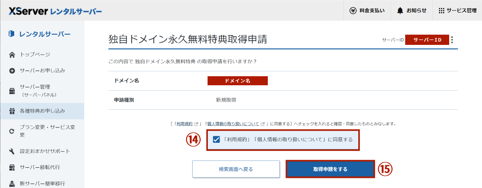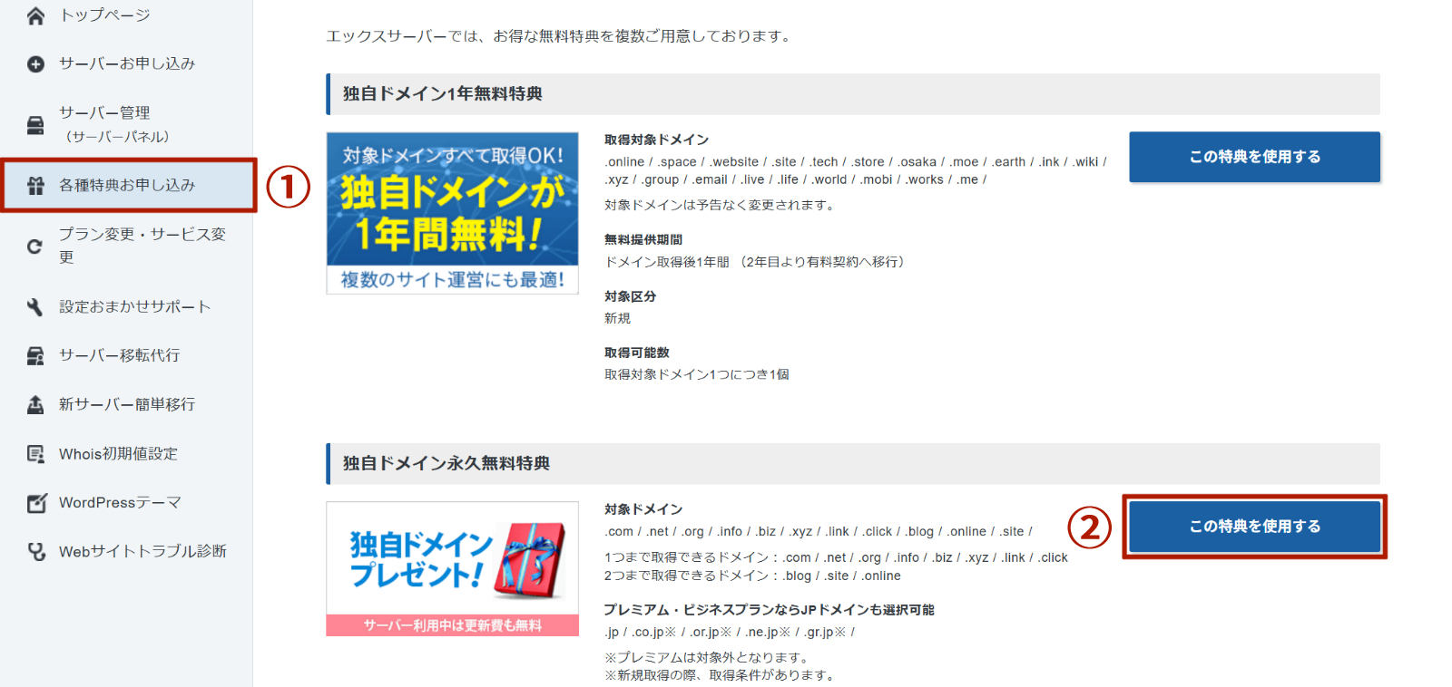 独自ドメイン永久無料特典を利用するには